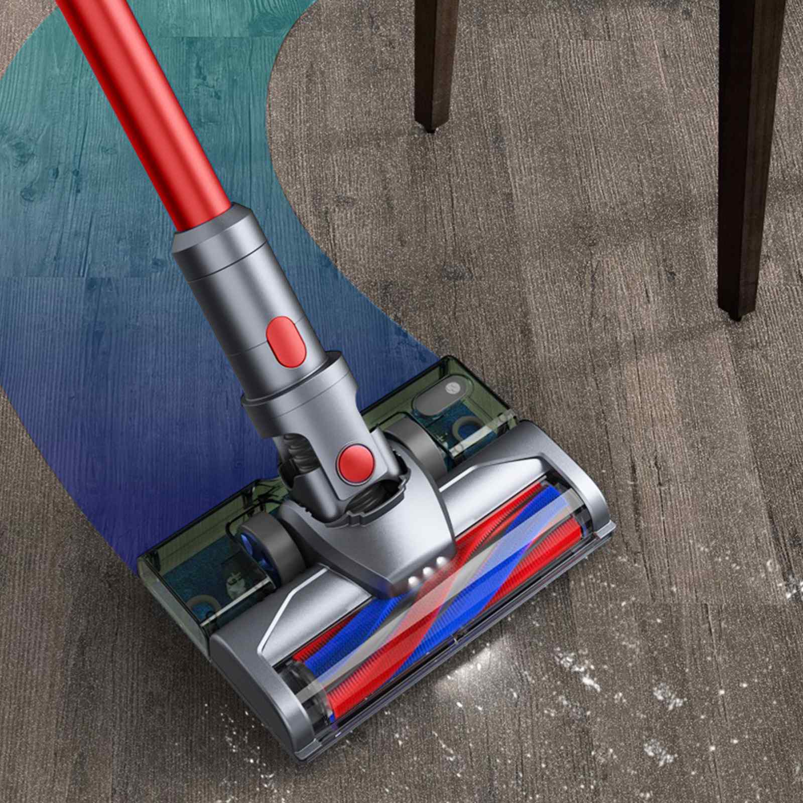 • Dual-Action Cleaning: The vacuum head removes dust and dirt while the rear mop damp mops the floor